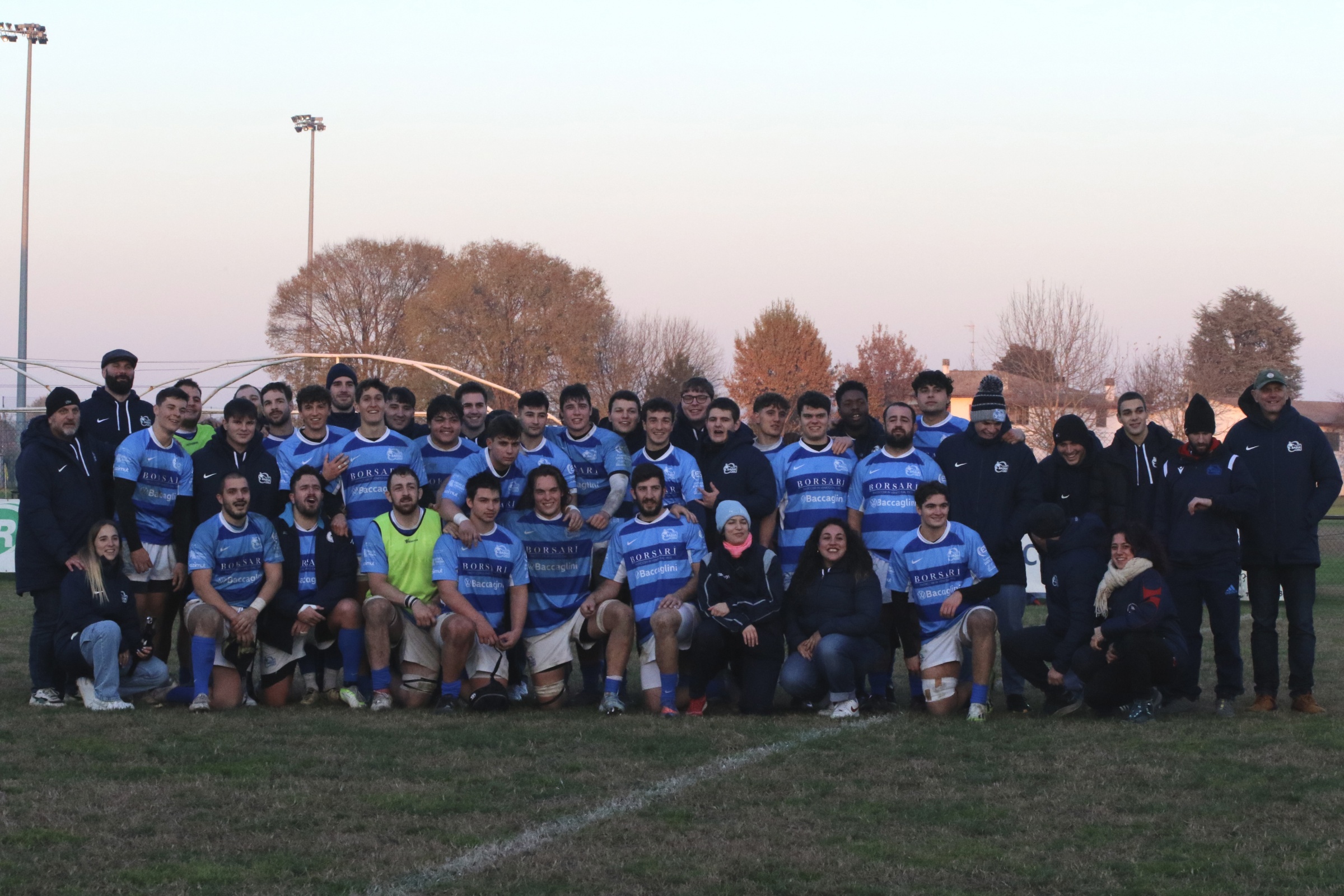 Questo il Borsari Badia First XV: Cantini; Milani, Pellegrini, Zampolli, Bassin; Gardinale, Russi; Rossoni, Milan (Cap.), Astolfi; Bettarello, Carballo; Coenraad, Bisan, Berto.
