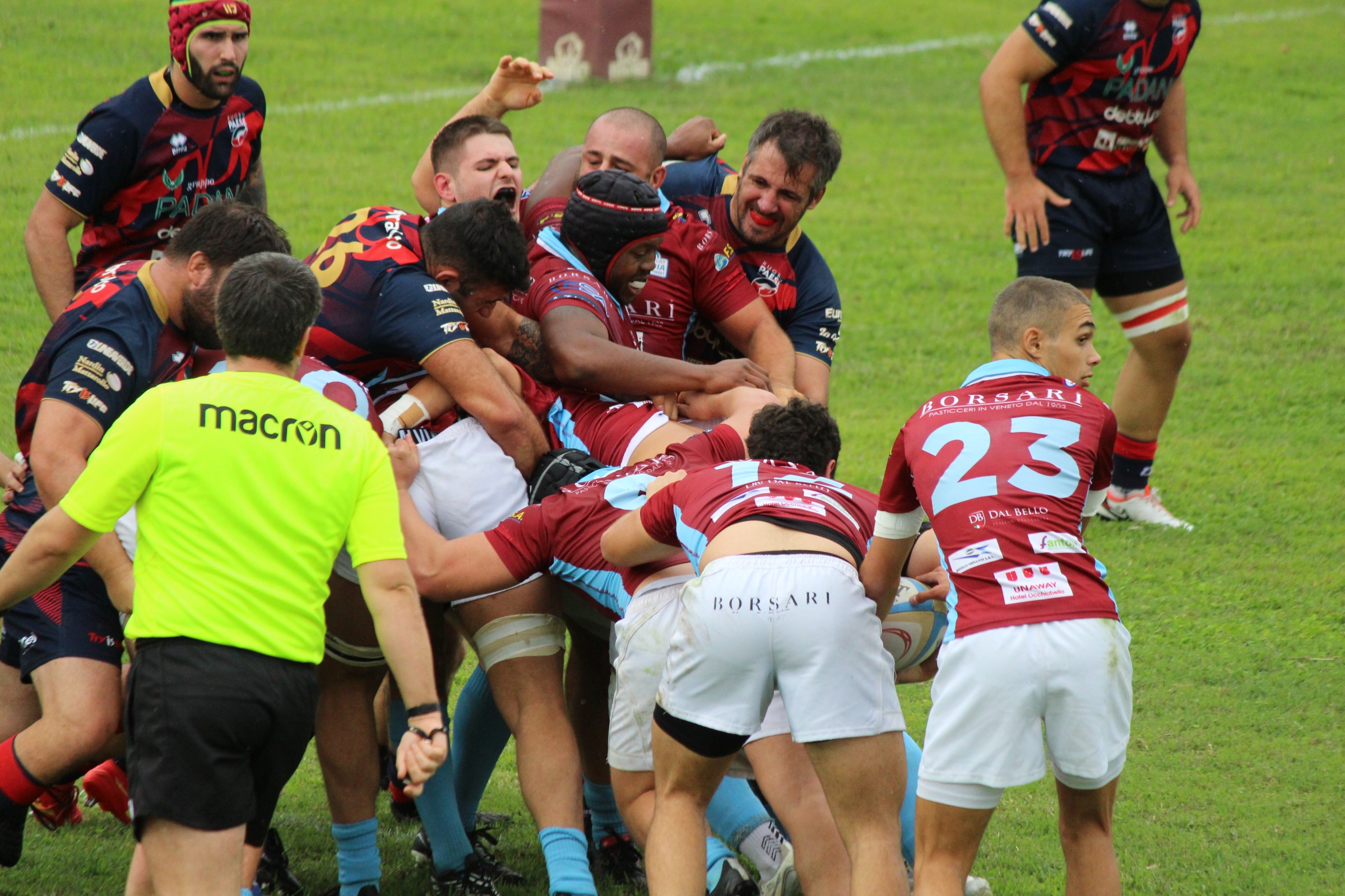 Questo il Borsari Rugby Badia First XV: Gardinale; Barbacci, Baccaro, Masiero, Bassin; Cantini, Russi; Marcadella, Milan (Cap.), Astolfi; Rossoni, Carballo; Coenraad, Bisan, Berto.